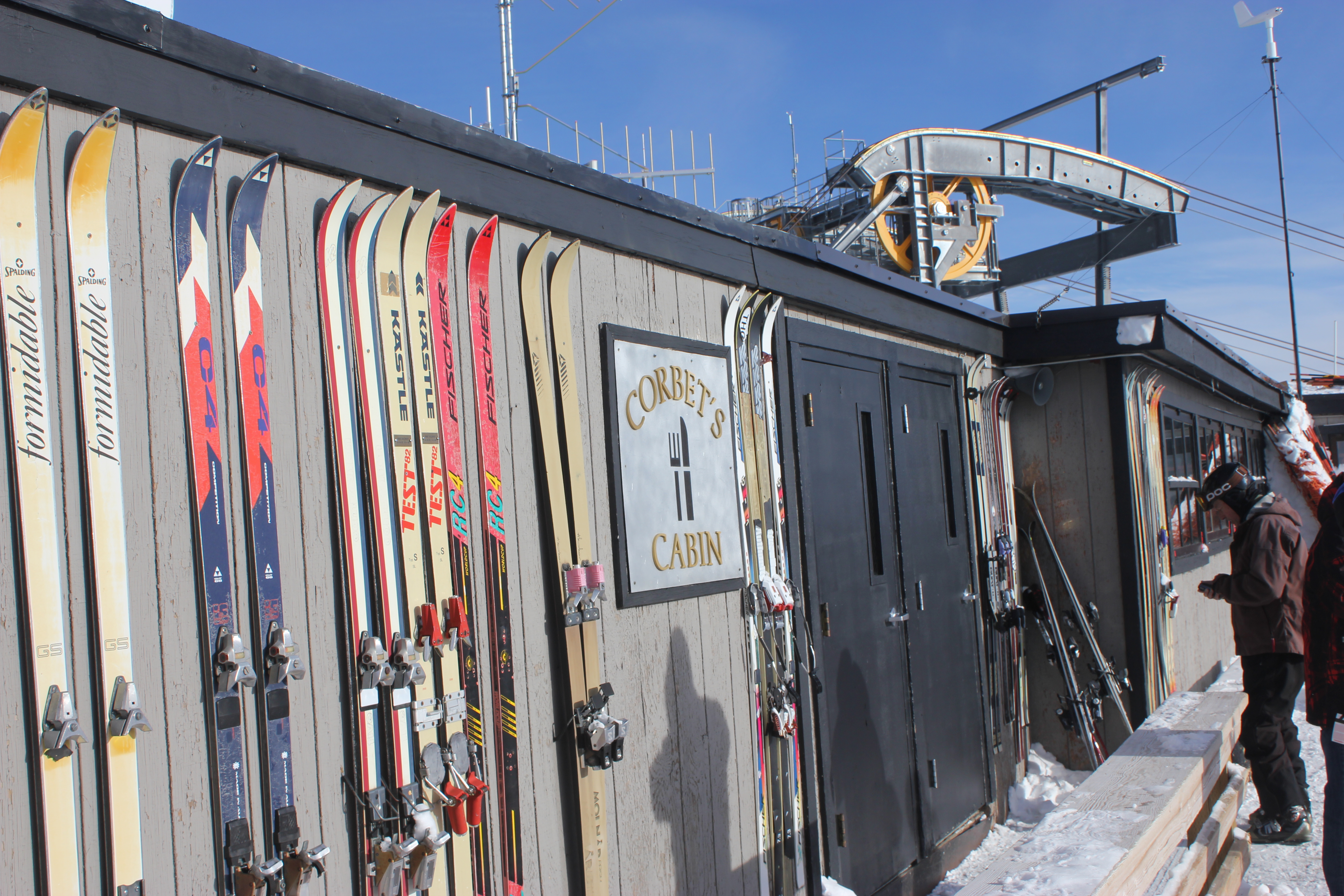 For breakfast, take the Big Red aerial tram up to Corbet’s Cabin for waffles. Corbet’s Cabin sits atop Rendezvous Peak at 10,450 feet, a gusty tip of the ski hill that may give you vertigo. You can see crazy skiers descending this Corbet’s Couloir from Big Red. (You can ride Big Red back down the mountain if the black runs are too much for you.)