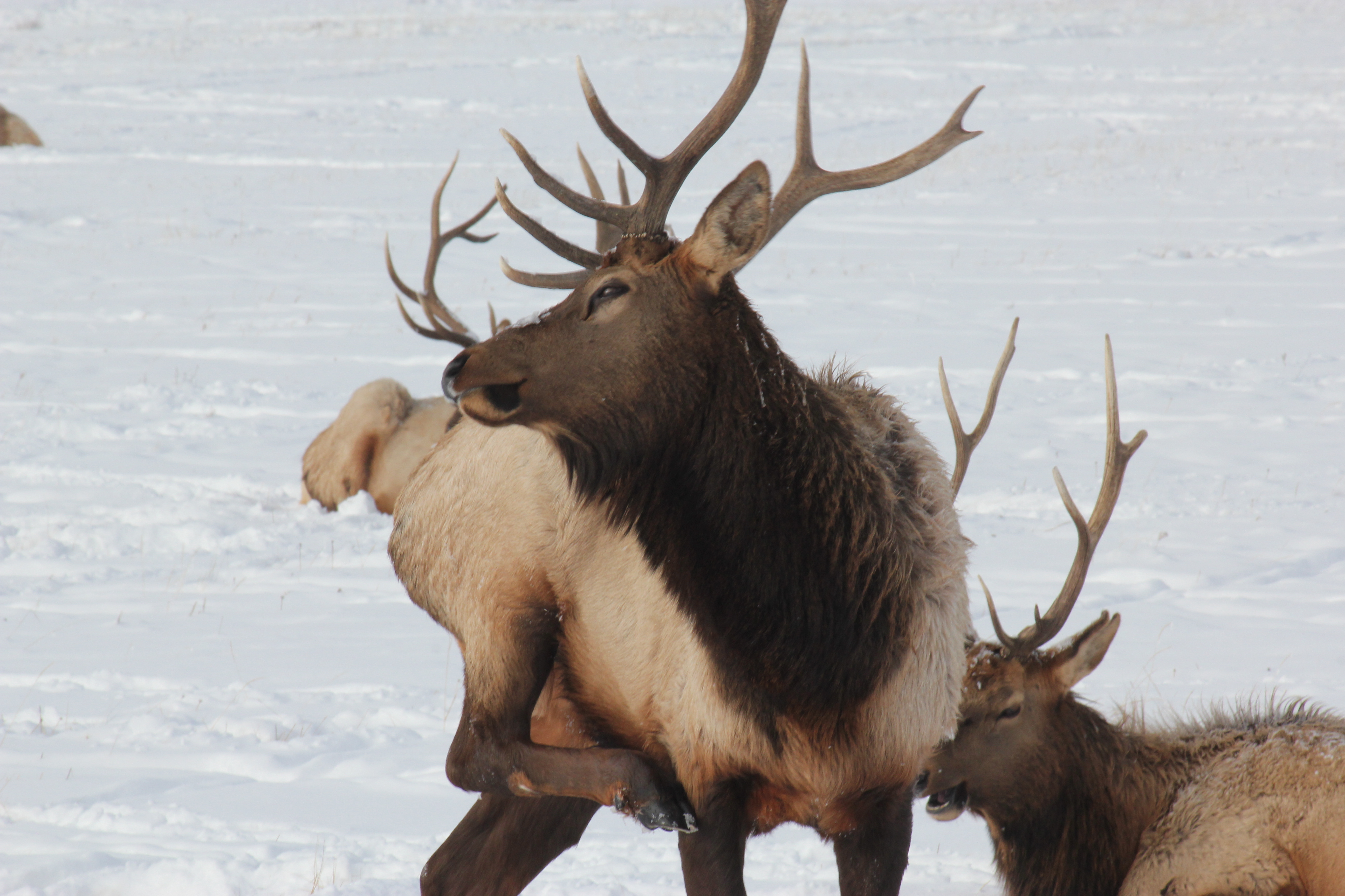 The elk arrive voluntarily to the refuge in the winter and stay for the alfalfa pellets. Despite the freedom to come and go, about 5000 animals hang out through the winter, so the refuge makes excellent viewing. When you visit in winter, the elk are still using their antlers, which they shed in March or April. Antlers are auctioned by the Jackson District Boy Scouts at Elk Fest on Memorial Weekend.