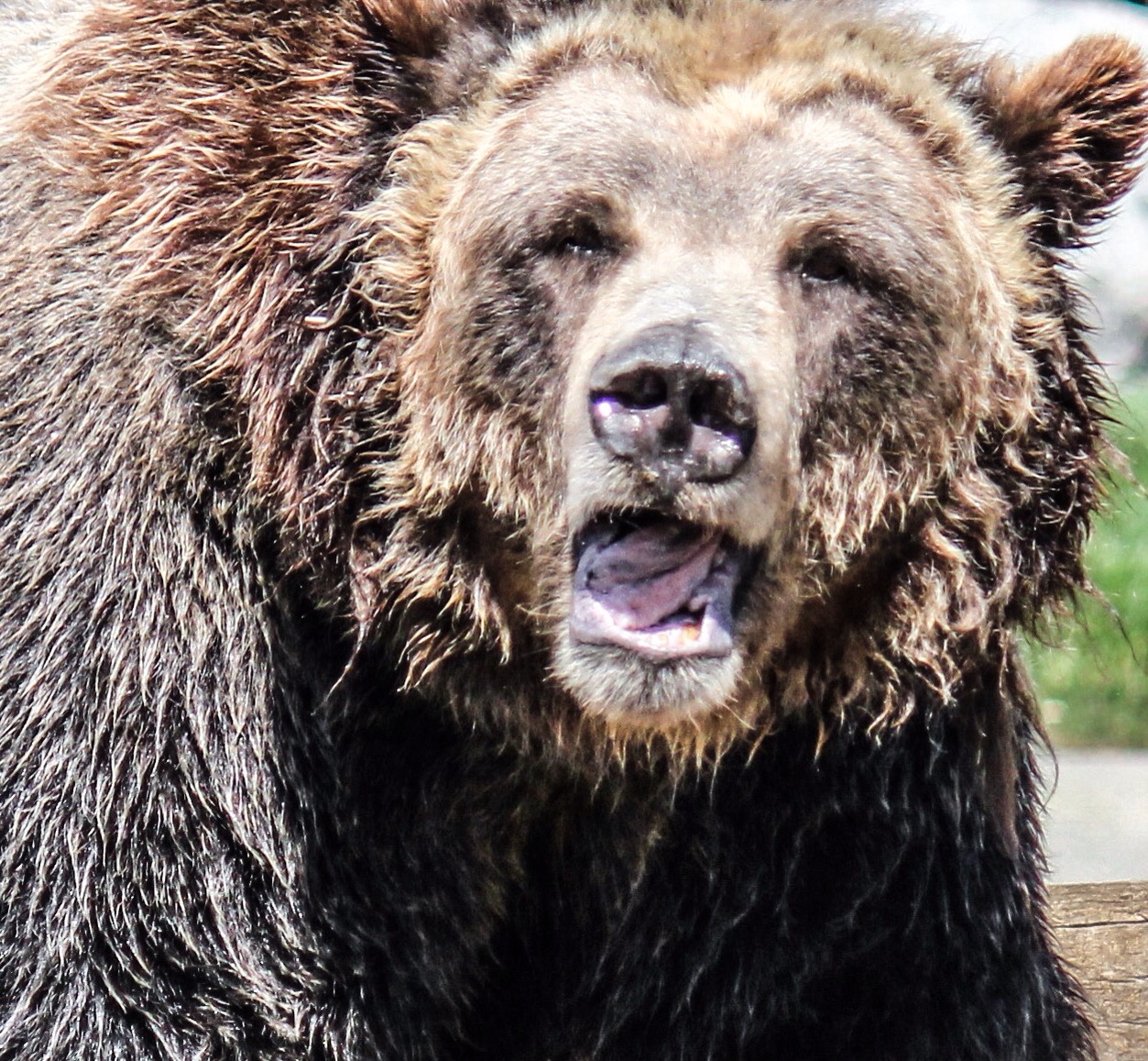 I hoist the eight-pound zoom lens I’d rented for $140. At the furthest point of zoom, the grizzly is still a brown smudge between two telephone poles. The spotter gets excited, shouting that the bear is, “on the move.” I snap a shot. I’ve got a photo of a brown blur in a forgettable field of grass.