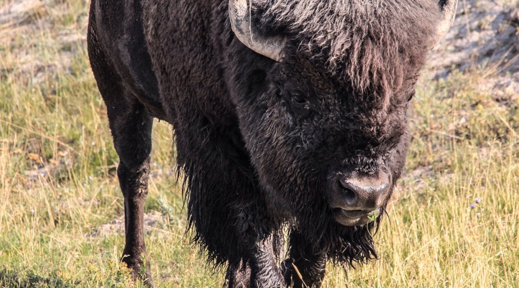 The next jam was the most common wildlife traffic snarl in Yellowstone: bison. Bison are huge and ubiquitous. Brad calls them rattalos because they are everywhere! A calf approached our car very directly. While I was composing a shot, I found out that bison are not as doped up as they look. A huge, male bull shrieked a bellow at the calf and shook its black tongue at me. Thought I was going to need bear spray.