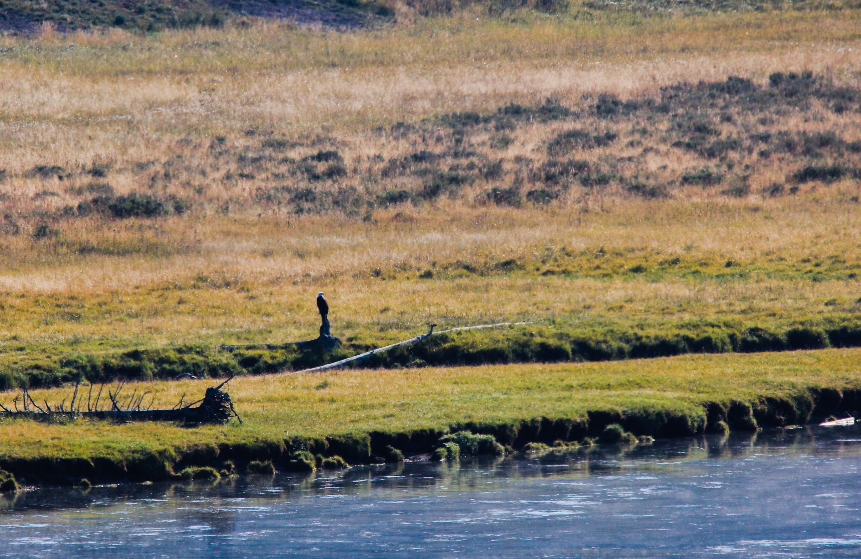 “An eagle!” an older man tells us. “On that stump on the other side of the river. See it? There’s a log, then a shadow in the grass, and a finger-length to the right is a stump.”