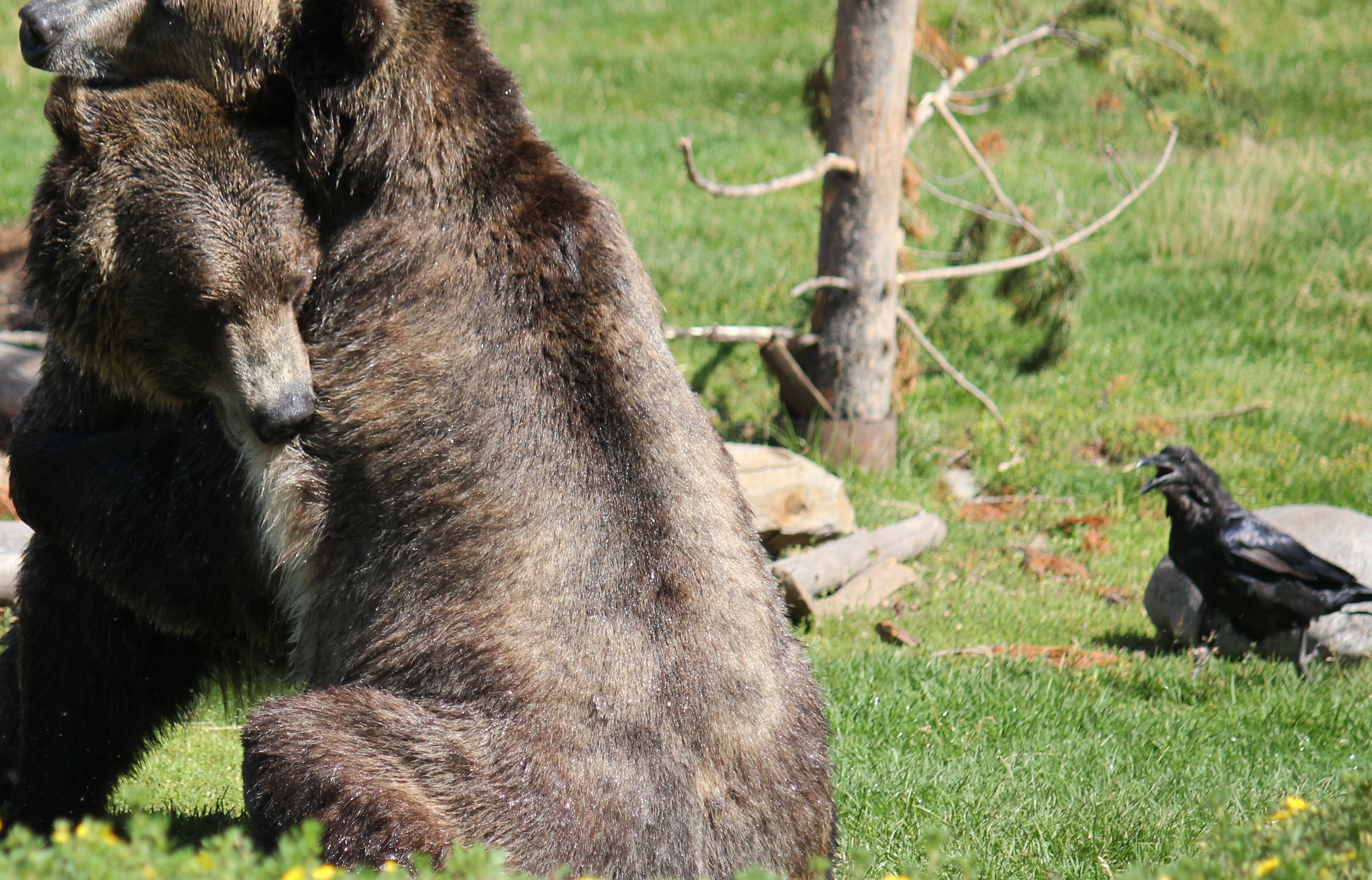 Uptight ravens are no fun.Jago Peregrine Falcon, Grizzly & Wolf Discovery Center.