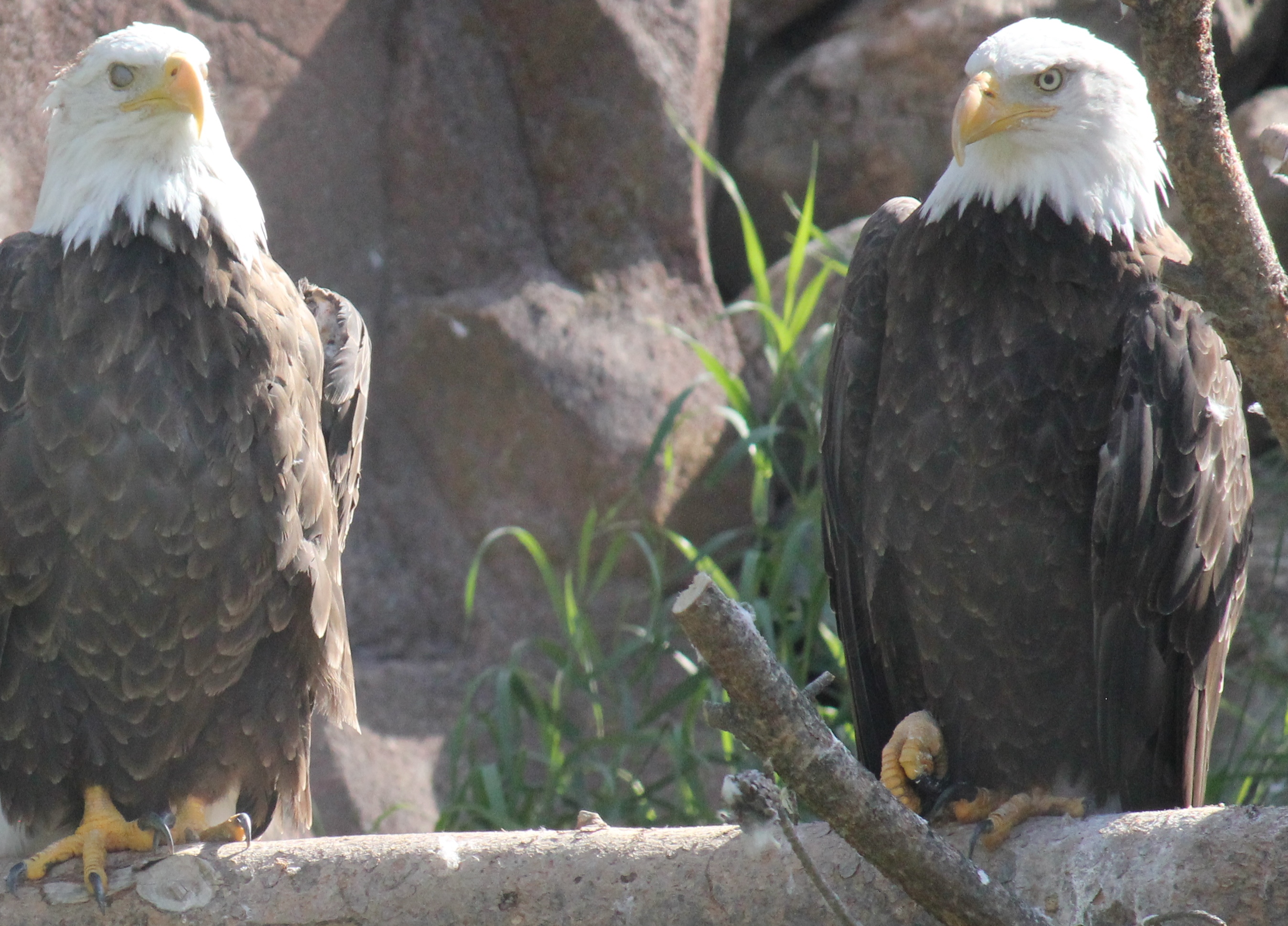 The Bird-of-Prey area of the Discovery Center was full of personalities, like the gentle-looking, “who, me?” Jago Peregrine Falcon and the judgmental bald eagles.