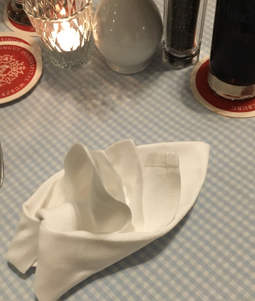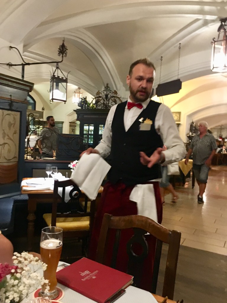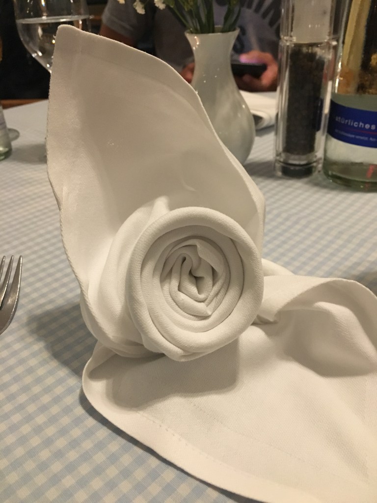 Our waiter was also an expert napkin folder, a magician and expert beer-pusher. Gage gave in. Cole, however, but refused to drink it (he had taken an Oath!)